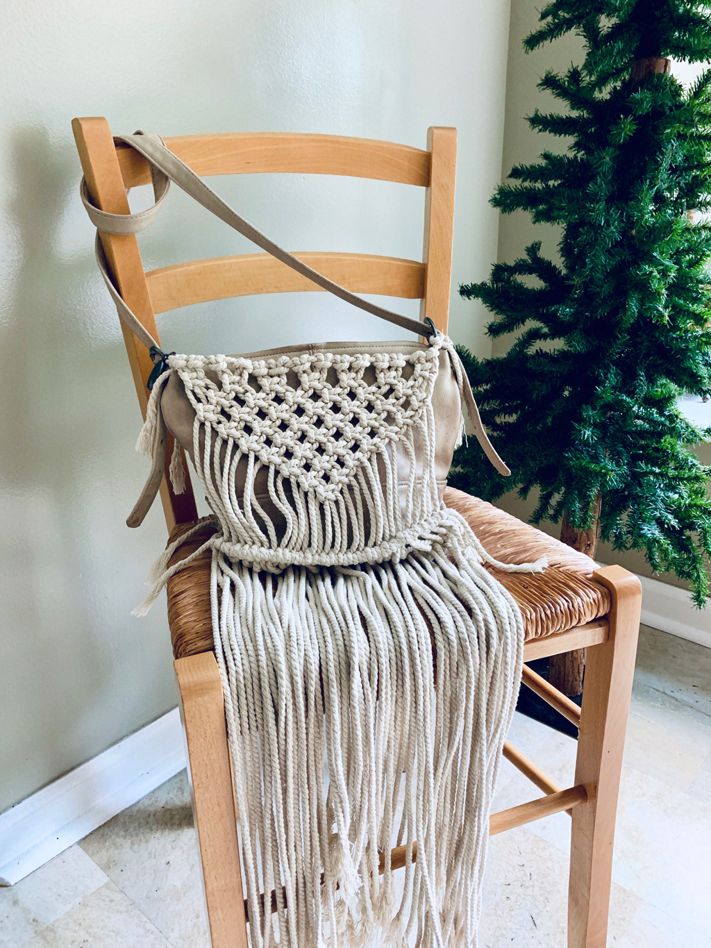 This was a commission from my grandma. She wanted me to add a macrame design to the bag.